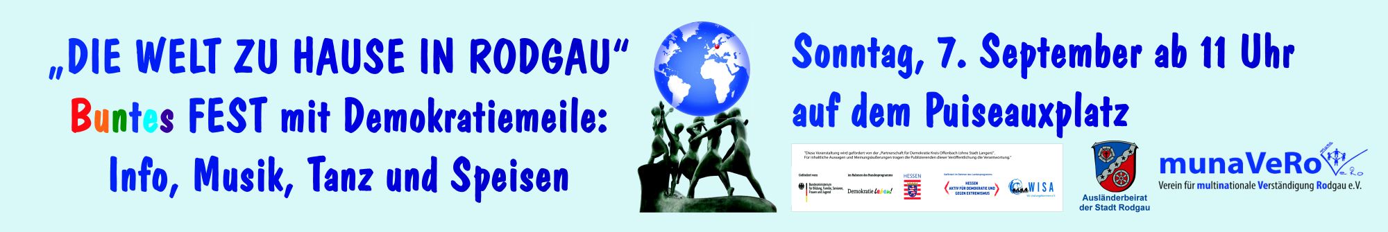 So 07.09.2025: Die Welt zu Hause in Rodgau - Begegnungsfest mit Demokratiemeile -